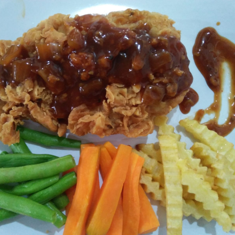 Chicken Steak enak dikombinasikan dengan sayuran seperti wortel, kentang grill, buncis dan siraman saus tiram bikin nampol dan enak untuk menemani waktu santaimu